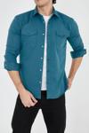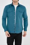 Denim materyali ile dayanıklılık ve şıklığı bir arada sunan bu gömlek, her ortama uyum sağlar.