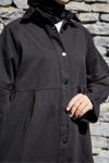 - Gömlek yakası ve düğmeli kapama şekliyle klasik ve modern çizgileri bir arada barındırır