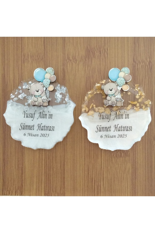 Epoksi Magneti 20 Adet oturan balonlu ayıcık, bebek mevlütü, Düğün Kuran Hatırası