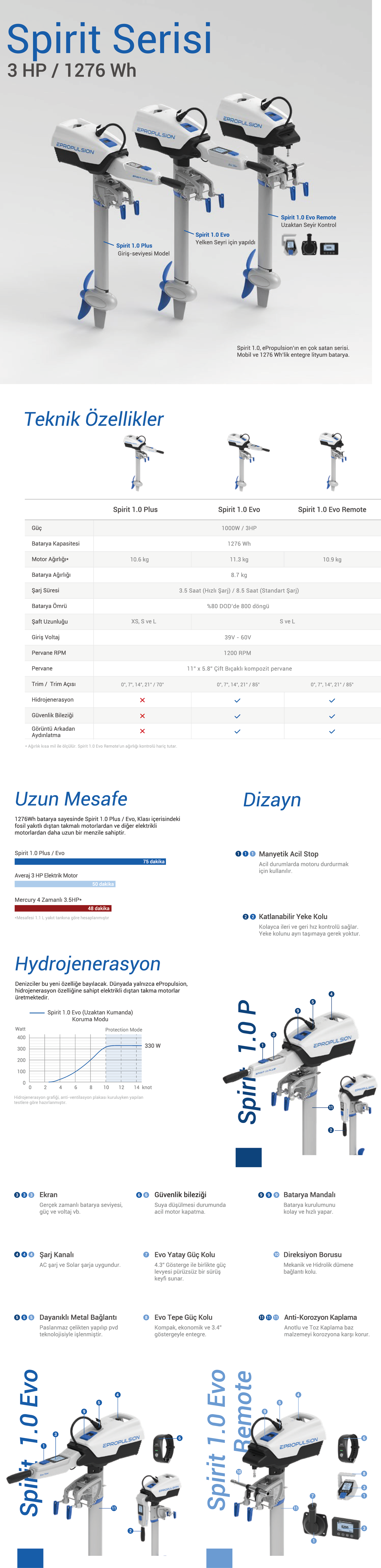 Spirit 1.0 Evo Remote 1 kw Kısa Şaft Elektrikli Dıştan Takma Motor