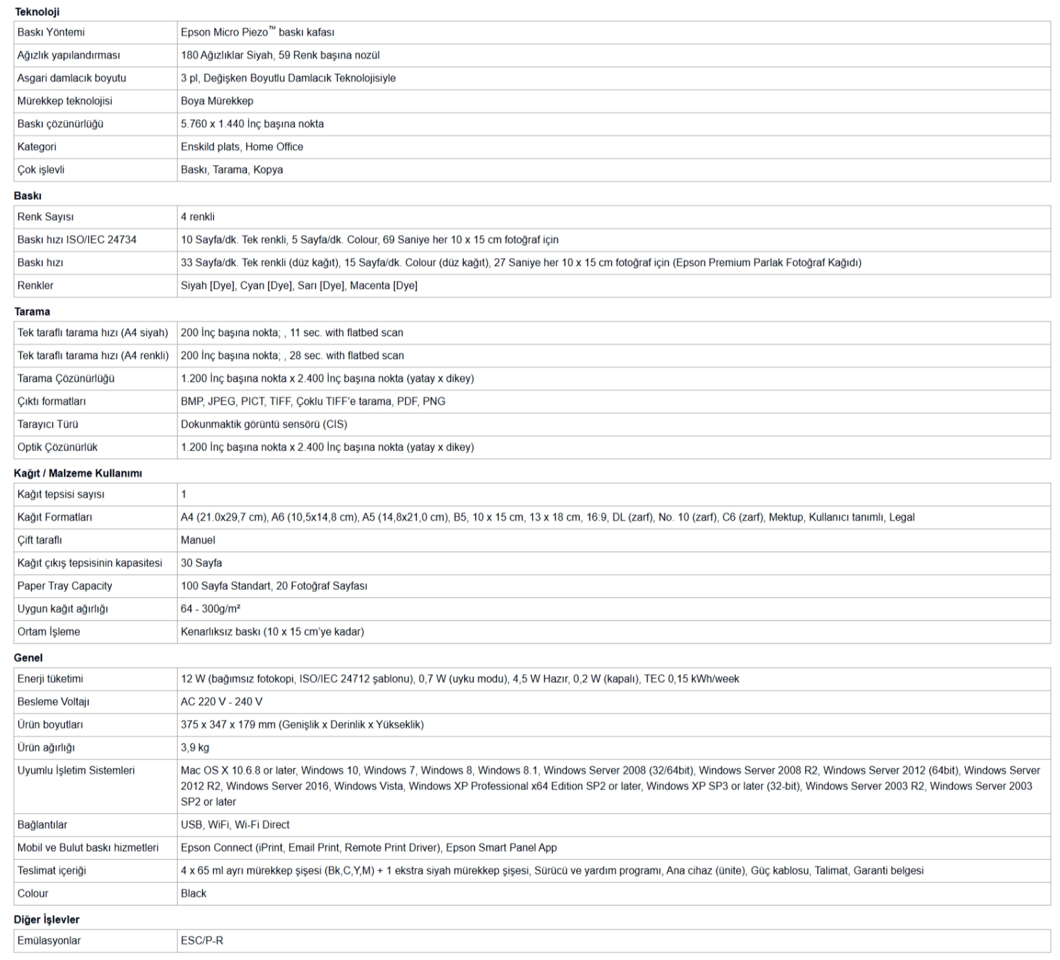 • 3 yıla kadar yetecek mürekkep3 pakete dahildir