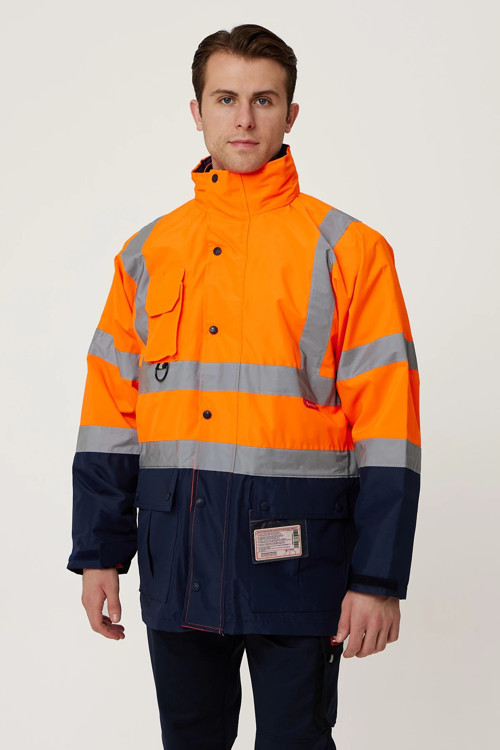 Bu yüksek görünürlüklü İş Güvenliği Parkası ile her koşulda güvende ve kuru kalın! Dayanıklı ve su geçirmez Oxford kumaşından üretilmiş bu ceket, düşük ışık koşullarında görünürlüğü artırmak için ön ve arkada reflektif şeritlerle donatılmıştır. 5 farklı kullanım seçeneği sunan bu çok yönlü tasarım, her koşulda işinizi güvenle yapabilmenizi sağlar. Katlanabilir kapüşon, alet ve cihazlar için çoklu cepler, çıkarılabilir kimlik cebi ve ayarlanabilir manşetler gibi pratik özellikleri ile işlevsellik ve güvenlik bir arada sunulmaktadır.