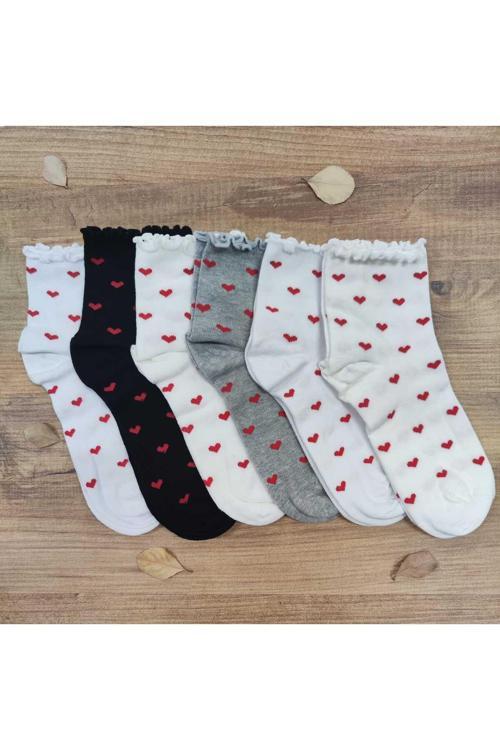 6 Çift Kadın Pamuklu Dikişsiz Kaliteli Kalpli Kıvrık Konç