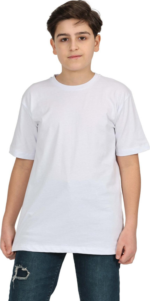 Erkek Çocuk Beyaz Düz Baskısız Kısa Kol Basic Casual-Okul T-Shirt