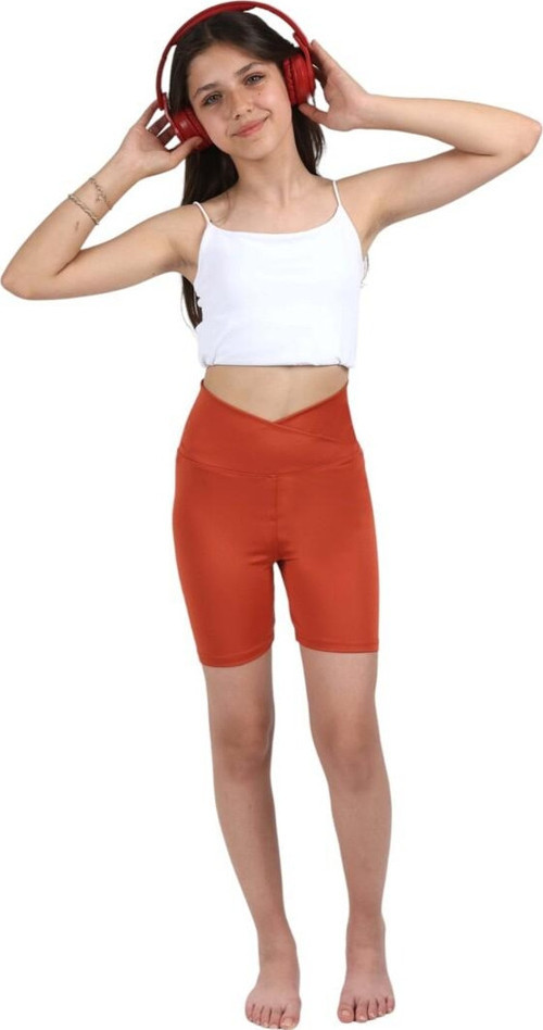 Erdem Kids Kız Çocuk Yüksek Kruvaze Bel, Biker, Koşu, Yürüyüş, Spor, Atletik, Egzersiz, Fittness Kısa Tayt