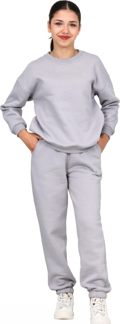 Erdem Kids Kız-Erkek Çocuk Paçası Lastikli 3 İplik Şardonlu İçi Pamuklu Basic Bisiklet Yaka Eşofman Takımı