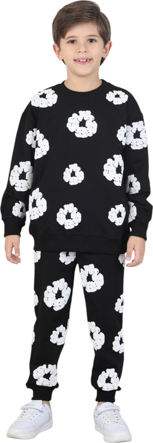 Erdem Kids Kız - Erkek Çocuk Ünisex Papatya Kabartma Baskılı Pijama Takımı İki İplik Eşofman Takımı İkili Takım