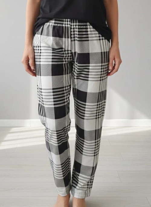 Erdenay Tekstil İpeksi Dokulu Süet Pijama Altı Krem Rengi Üzeri Kahverengi Ekoseli