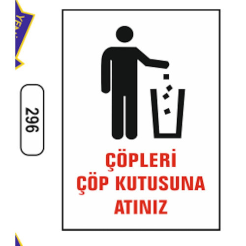 296 Çöpleri̇ Çöp Kutusuna Atınız PVC Uyarı Levhası 25 x 35 cm