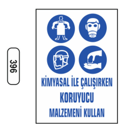 Ergündoğdu 396 Ki̇myasal İle Çalışırken Koruyucu Malzemeni̇zi̇ Kullanin PVC Uyarı Levhası 25 x 35 cm