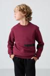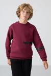 Tommy Life Erguvan Pamuklu Kalın İçi Tüylü Yumuşak Dokulu Standart Fit Baskılı Erkek Çocuk Sweatshirt - 11238