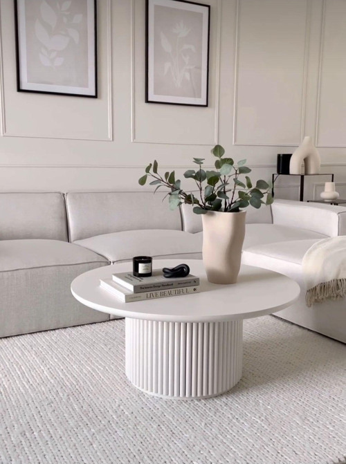 Eriza Nare, Yuvarlak Modern Çıtalı Orta Sehpa, Beyaz
