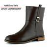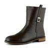 Erkan Saçmacı Kahverengi Hakiki Dana Derisi Tokalı Fermuarlı Yuvarlak Burun Kalın Topuklu Günlük Bot