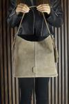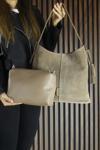 - Omuz çantası, yüksek kaliteli hakiki (gerçek) dana süet malzemeden üretilmiştir. Yumuşak dokusuyla dikkat çeker ve uzun ömürlü kullanım sunar.