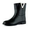 Erkan Saçmacı Siyah Hakiki Dana Derisi Metal Detaylı Fermuar Yuvarlak Burun Kalın Topuklu Günlük Bot