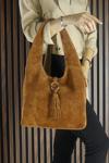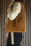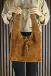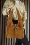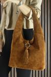- Omuz çantası, yüksek kaliteli hakiki (gerçek) dana süet malzemeden üretilmiştir. Yumuşak dokusuyla dikkat çeker ve uzun ömürlü kullanım sunar.