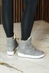 Talvi Gri Süet Yuvarlak Burun Cırt Cırtlı Gizli Dolgu Topuklu Günlük Bot