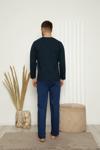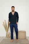 Erkek %100 Pamuk Önden Düğmeli Cepli Uzun Kollu Pijama Takımı