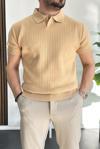 Edwox Erkek Açık Yaka Çizgili Desenli Tişört Sarı Edw258