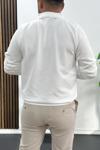 Edwox Erkek Açık Yaka Düz Desen Normal Kalıp Kazak Beyaz Edw423