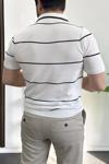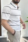 Erkek Açık Yaka Yan Çizgili Tişört Beyaz Edw259
