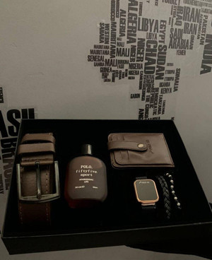 Erkek Kol Saati Parfüm Cüzdan Kemer Kartlık Kombin Set Kahverengi2 Set