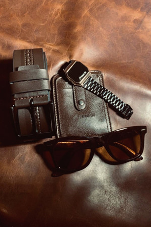 Siyah Klasik Erkek Cüzdan Kemer Kartlık Güneş Gözlüğü Seti