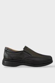 Liger Erkek Bağcıksız Topuk Destekli Konfor Ortopedik Hakiki Deri Ayakkabı SİYAH
