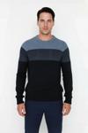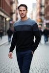 Ersefa Erkek Basic Kesim Bisiklet Yaka Uzun Kol Renk Bloklu Akrilik Triko Kazak Kış Kombinlerine Özel