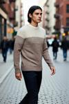 Ersefa Erkek Basic Kesim Bisiklet Yaka Uzun Kol Renk Bloklu Akrilik Triko Kazak Kış Kombinlerine Özel