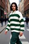 Erkek Basic Koleksiyonumuzun öne çıkan parçası olan bu oversize triko kazak, rahatlığı ve şıklığı bir arada sunar. Geniş kalıbı ile gün boyu özgür hareket imkanı tanırken, modern erkek stilini yansıtır. %100 akrilik materyalden üretilen bu kazak, kış ve sonbahar aylarında mükemmel bir sıcaklık sağlarken, aynı zamanda hafif ve nefes alabilen yapısıyla konforu artırır. Kahverengi ve krem renklerindeki çarpıcı çizgili deseni, kazaka dinamik bir hava katarak casual kombinlerinize modern bir dokunuş ekler. Baskısız tasarımı sadeliği sevenler için idealdir.