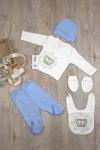 Erkek Bebek Mavi Prens Taşlı Lüks 5 Li Hastane Çıkışı Yenidoğan Seti STL6216