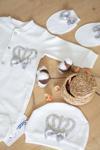 Erkek Bebek Papyonlu Gri Kral Taşlı Süslü Tulum Seti 0-3 Ay STL6371