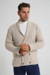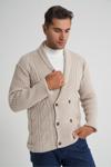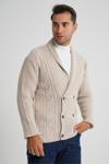 Trist Star Erkek Bej Şal Yaka Altı Düğmeli Kruvaze Yün Ceket Hırka TRIST-5353
