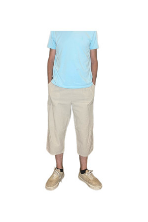 Duxa %100 Pamuk Keten Kumaştan Beli Lastikli ve Bağcıklı Erkek Rahat Kalıp Bol Kesim Günlük Ev Dış Spor Yazlık Baharlık Giyim Hambez Diz Altı Kapri Bermuda Şort Pantolon Eşofman Altı