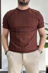 Edwox Erkek Bisiklet Yaka Desenli Tişört Kiremit Edw260