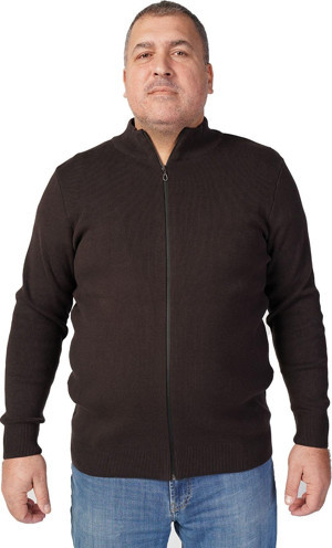 Büyük Beden Kahve Dik Yaka Fermuarlı %100 Pamuklu Erkek Hırka Trıst-2107