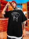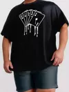 Lumiart erkek büyük beden Kart baskılı düz renk kısa kollu bisiklet yaka tişört gündelik giyim - Siyah