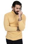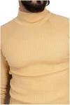 Erkek Camel Balıkçı Yaka Çizgili Slim Fit Örme Kazak 2100015
