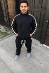 Mzp Kartan Erkek Çift Şeritli Eşofman Takım Dik Yaka Fermuarlı Sweatshirt Boru Paça Alt, Oversize 3 iplik Pamuk