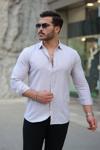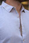 Erkek çizgi Desenli Uzun Kollu Pamuklu Keten Gömlek