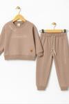 Takım; göğsünde yazı baskısı bulunan rahat kalıp sweatshirt ve beli lastikli, ip detaylı alt eşofmandan oluşmaktadır. Çocuğunuzun oyun oynarken, evde ya da dışarıda konforla hareket etmesine olanak tanır.