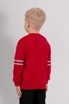 • Üst parça: kırmızı ı renkli, uzun kollu sweatshirt. Ön kısmında “ATHLETIC” yazı detayı ve kol şeritleri ile spor bir stil sunar.