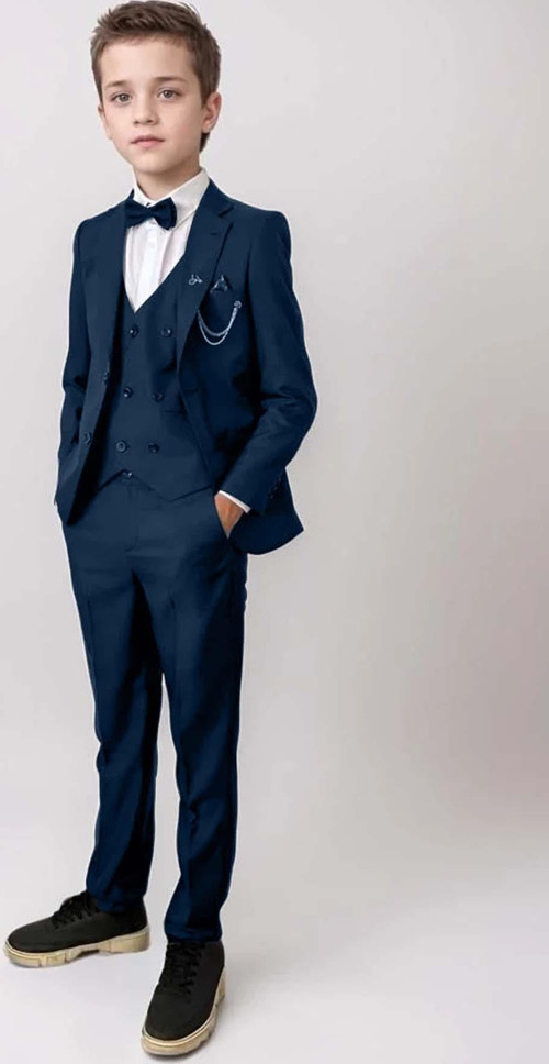 Erkek Çocuk Blazer Ceketli, Cepken Yelekli Lacivert Takım Elbise 5-9 Yaş