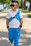 Erkek Çocuk Boydan Düğmeli Gömlek ve Kargo Cepli Mavi Alt Üst Takım