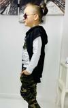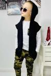 Erkek Çocuk Cep Detaylı Kazak Kolsuz Siyah Yelek Kamuflaj Detaylı Eşofman Takım