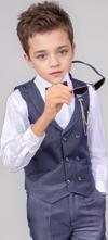 Erkek Çocuk Cepken Yelekli Şal Yaka Lacivert Takım Elbise 10-16 Yaş