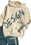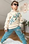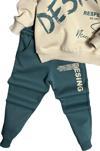 Erkek Çocuk Çift Baskılı Respect Design Yazı Şardonlu Yeşil Eşofman Takım
