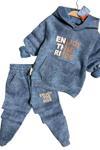 Erkek Çocuk Enjoy The Kalıp Baskılı Kapşonlu Sweatshirt Mavi Eşofman Takım