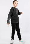 Erkek Çocuk Kot Detaylı Fermuarlı Kapüşonlu Sweatshirt, İçi Şardonlu, Baskılı